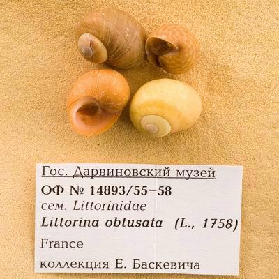 Морской брюхоногий моллюск. Littorina obtusata (L., 1758). Классификация: Моллюски Mollusca, Брюхоногие Gastropoda, Neotaenioglossa, Littorinidae