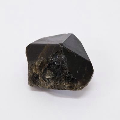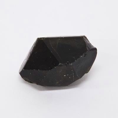 Кристалл кварца морион, от тёмно-коричневого цвета в основании - до чёрного к вершине, предположительно имел пять граней, одна полностью сколота. Морион – это черный или тёмно-бурый кварц, двуокись кремния (кремнезем), непрозрачный. Специалисты расходятся во мнениях по поводу происхождения названия «морион»; одни считают, что оно происходит от греческого marrosys — «хмурый» или от morysso — «чернить», другие — что от латинского mormorion — «темный кристалл». Местонахождения мориона есть в Европе, США, Канаде, России (Урал) и странах бывшего СССР (Казахстан, Башкортостан), на Украине (Волынь) и Мадагаскаре, а также в Бразилии.