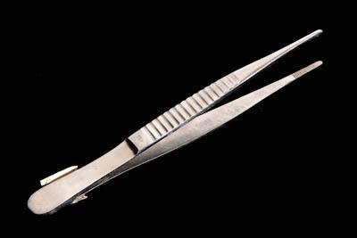 Пинцет хирургический общего назначения, прямой с насечкой, с узкими губками с насечкой, использовался при изготовлении чучел животных.