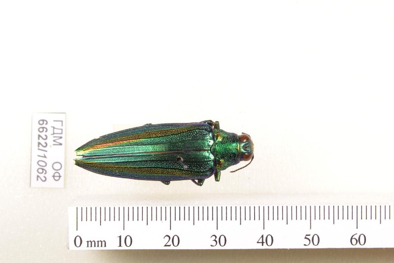 Сухое насекомое. Златка. Chrysochroa vittata (Fabricius, 1775). Классификация: Членистоногие Arthropoda, Насекомые Insecta, Жуки Coleoptera, Златки Buprestidae