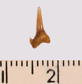 Зуб. Акула. Odontaspis subulata (Agassiz, 1843). Классификация: Хордовые Chordata, Позвоночные Vertebrata, Хрящевые рыбы Chondrichthyes, Пластиножаберные Elasmobranchii, Акулы Selachii, Ламнообразные Lamniformes