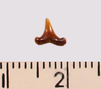 Зуб. Акула. Odontaspis subulata (Agassiz, 1843). Классификация: Хордовые Chordata, Позвоночные Vertebrata, Хрящевые рыбы Chondrichthyes, Пластиножаберные Elasmobranchii, Акулы Selachii, Ламнообразные Lamniformes
