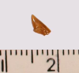 Зуб (фрагмент). Акула. Palaeoanacorax obliquus (Reuss, 1845). Классификация: Хордовые Chordata, Позвоночные Vertebrata, Хрящевые рыбы Chondrichthyes, Пластиножаберные Elasmobranchii, Акулы Selachii, Ламнообразные Lamniformes