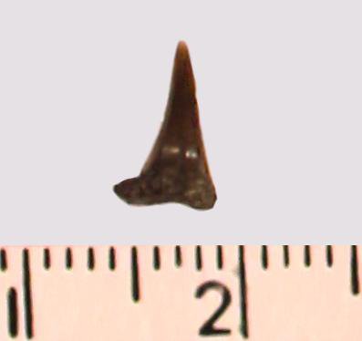 Зуб. Акула. Odontaspis striatula Dalinkevicius, 1935. Классификация: Хордовые Chordata, Позвоночные Vertebrata, Хрящевые рыбы Chondrichthyes, Пластиножаберные Elasmobranchii, Акулы Selachii, Ламнообразные Lamniformes