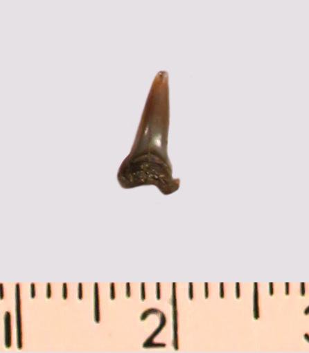 Зуб. Акула. Odontaspis striatula Dalinkevicius, 1935. Классификация: Хордовые Chordata, Позвоночные Vertebrata, Хрящевые рыбы Chondrichthyes, Пластиножаберные Elasmobranchii, Акулы Selachii, Ламнообразные Lamniformes