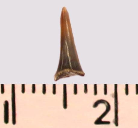 Зуб (фрагмент). Акула. Odontaspis subulata (Agassiz, 1843). Классификация: Хордовые Chordata, Позвоночные Vertebrata, Хрящевые рыбы Chondrichthyes, Пластиножаберные Elasmobranchii, Акулы Selachii, Ламнообразные Lamniformes