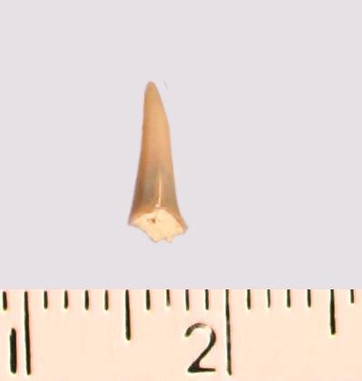 Зуб (фрагмент). Акула. Odontaspis subulata (Agassiz, 1843). Классификация: Хордовые Chordata, Позвоночные Vertebrata, Хрящевые рыбы Chondrichthyes, Пластиножаберные Elasmobranchii, Акулы Selachii, Ламнообразные Lamniformes