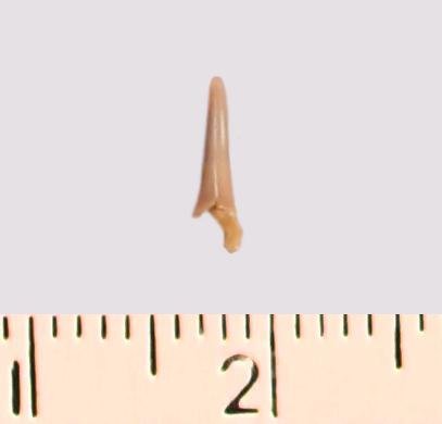Зуб (фрагмент). Акула. Odontaspis subulata (Agassiz, 1843). Классификация: Хордовые Chordata, Позвоночные Vertebrata, Хрящевые рыбы Chondrichthyes, Пластиножаберные Elasmobranchii, Акулы Selachii, Ламнообразные Lamniformes