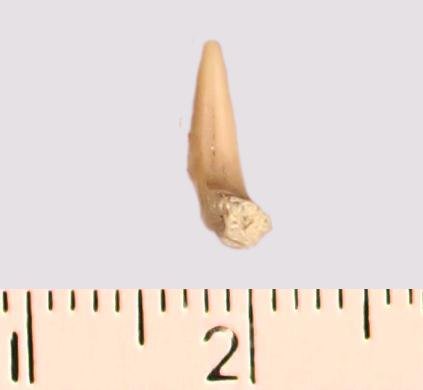 Зуб (фрагмент). Акула. Odontaspis subulata (Agassiz, 1843). Классификация: Хордовые Chordata, Позвоночные Vertebrata, Хрящевые рыбы Chondrichthyes, Пластиножаберные Elasmobranchii, Акулы Selachii, Ламнообразные Lamniformes