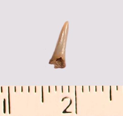 Зуб (фрагмент). Акула. Odontaspis subulata (Agassiz, 1843). Классификация: Хордовые Chordata, Позвоночные Vertebrata, Хрящевые рыбы Chondrichthyes, Пластиножаберные Elasmobranchii, Акулы Selachii, Ламнообразные Lamniformes