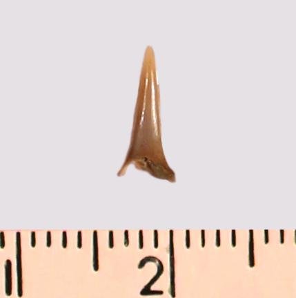 Зуб (фрагмент). Акула. Odontaspis subulata (Agassiz, 1843). Классификация: Хордовые Chordata, Позвоночные Vertebrata, Хрящевые рыбы Chondrichthyes, Пластиножаберные Elasmobranchii, Акулы Selachii, Ламнообразные Lamniformes