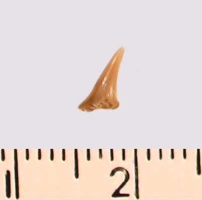 Зуб (фрагмент). Акула. Odontaspis subulata (Agassiz, 1843). Классификация: Хордовые Chordata, Позвоночные Vertebrata, Хрящевые рыбы Chondrichthyes, Пластиножаберные Elasmobranchii, Акулы Selachii, Ламнообразные Lamniformes