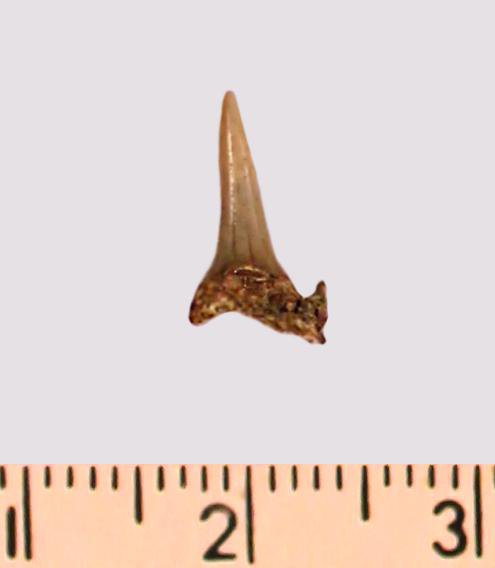 Зуб. Акула. Odontaspis subulata (Agassiz, 1843). Классификация: Хордовые Chordata, Позвоночные Vertebrata, Хрящевые рыбы Chondrichthyes, Пластиножаберные Elasmobranchii