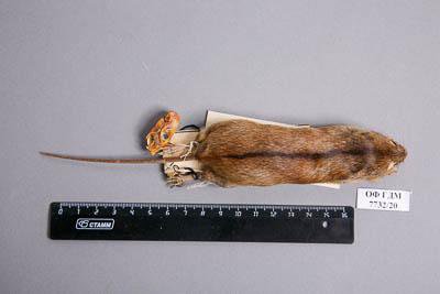 Тушка с черепом. Полевая мышь. Apodemus agrarius Pallas,1771. Классификация: Хордовые Chordata, Позвоночные Vertebrata, Млекопитающие Mammalia, Грызуны Rodentia, Muridae, Полевая мышь Apodemus agrarius Pallas,1771