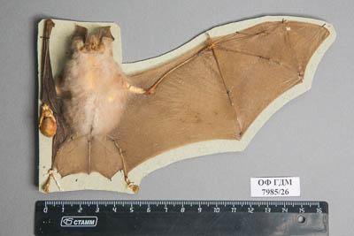 Тушка с черепом. Южный подковонос. Rhinolophus euryale Blasius,1853. Классификация: Хордовые Chordata, Позвоночные Vertebrata, Млекопитающие Mammalia, Рукокрылые Chiroptera, Подковоносые Rhinolophidae, Южный подковонос Rhinolophus euryale Blasius,1853