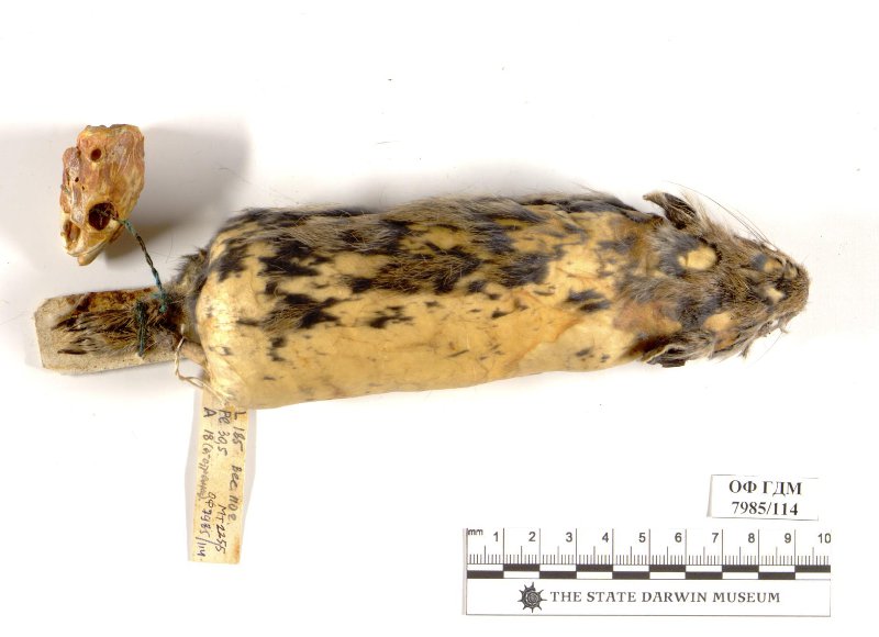Тушка с черепом. Даурская пищуха. Ochotona dauurica Pallas,1776. Классификация: Хордовые Chordata, Позвоночные Vertebrata, Млекопитающие Mammalia, Зайцеобразные Lagomorpha, Ochotonidae, Даурская пищуха Ochotona daurica Pallas, 1776