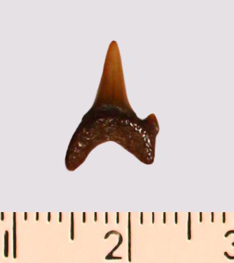 Зуб. Акула. Odontaspis macrorhiza (Cope) Leriche, 1902. Классификация: Хордовые Chordata, Позвоночные Vertebrata, Хрящевые рыбы Chondrichthyes, Пластиножаберные Elasmobranchii