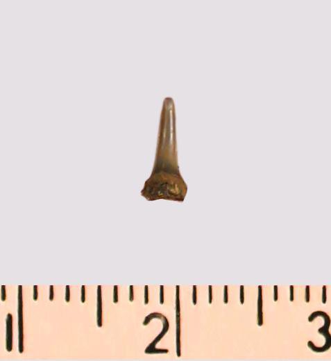 Зуб (фрагмент). Акула. Eostriatolamia subulata (Agassiz, 1843). Классификация: Хордовые Chordata, Позвоночные Vertebrata, Хрящевые рыбы Chondrichthyes, Пластиножаберные Elasmobranchii