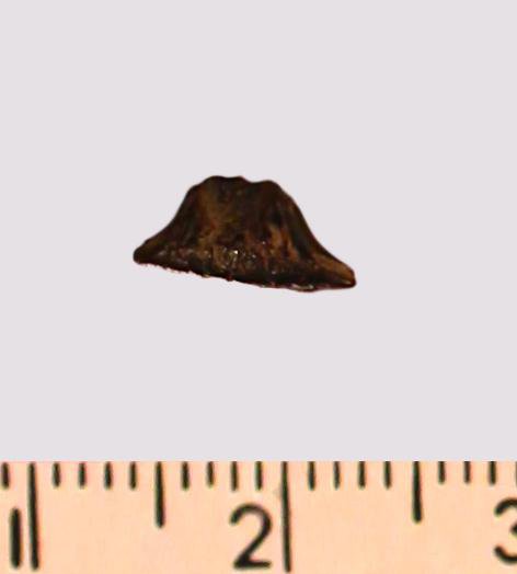 Зуб (фрагмент). Акула. Meristodon sp. Классификация: Хордовые Chordata, Позвоночные Vertebrata, Хрящевые рыбы Chondrichthyes, Пластиножаберные Elasmobranchii