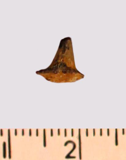 Зуб (фрагмент). Акула. Meristodon sp. Классификация: Хордовые Chordata, Позвоночные Vertebrata, Хрящевые рыбы Chondrichthyes, Пластиножаберные Elasmobranchii