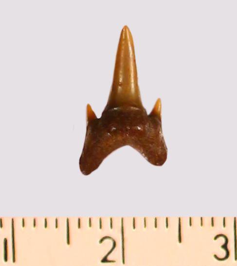 Зуб. Акула. Odontaspis macrorhiza (Cope) Leriche, 1902. Классификация: Хордовые Chordata, Позвоночные Vertebrata, Хрящевые рыбы Chondrichthyes, Пластиножаберные Elasmobranchii