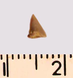 Зуб (фрагмент). Акула. Palaeoanacorax volgensis Glueckman, 1971. Классификация: Хордовые Chordata, Позвоночные Vertebrata, Хрящевые рыбы Chondrichthyes, Пластиножаберные Elasmobranchii