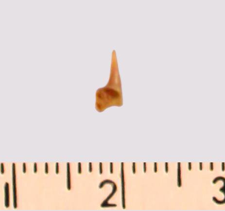 Зуб (фрагмент). Акула. Synechodus sp. Классификация: Хордовые Chordata, Позвоночные Vertebrata, Хрящевые рыбы Chondrichthyes, Пластиножаберные Elasmobranchii