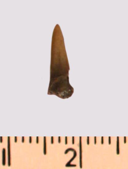 Зуб (фрагмент). Акула. Odontaspis macrorhiza (Cope) Leriche, 1902. Классификация: Хордовые Chordata, Позвоночные Vertebrata, Хрящевые рыбы Chondrichthyes, Пластиножаберные Elasmobranchii