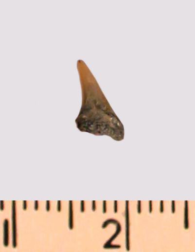 Зуб (фрагмент). Акула. Odontaspis macrorhiza (Cope) Leriche, 1902. Классификация: Хордовые Chordata, Позвоночные Vertebrata, Хрящевые рыбы Chondrichthyes, Пластиножаберные Elasmobranchii