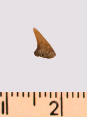 Зуб (фрагмент). Акула. Odontaspis macrorhiza (Cope) Leriche, 1902. Классификация: Хордовые Chordata, Позвоночные Vertebrata, Хрящевые рыбы Chondrichthyes, Пластиножаберные Elasmobranchii