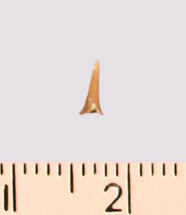 Зуб (фрагмент). Акула. Eostriatolamia gracilis (Davis, 1890). Классификация: Хордовые Chordata, Позвоночные Vertebrata, Хрящевые рыбы Chondrichthyes, Пластиножаберные Elasmobranchii
