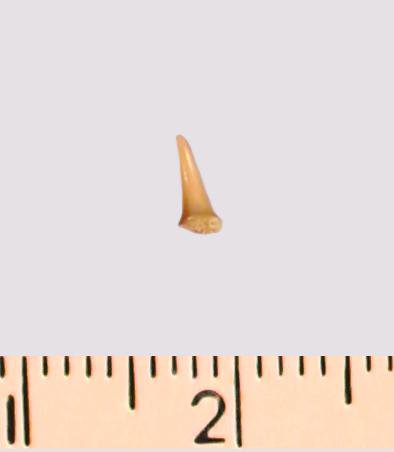 Зуб (фрагмент). Акула. Eostriatolamia gracilis (Davis, 1890). Классификация: Хордовые Chordata, Позвоночные Vertebrata, Хрящевые рыбы Chondrichthyes, Пластиножаберные Elasmobranchii