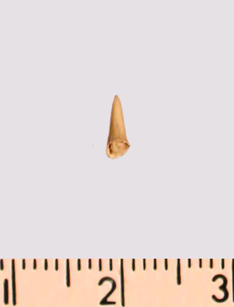 Зуб (фрагмент). Акула. Odontaspis macrorhiza (Cope) Leriche, 1902. Классификация: Хордовые Chordata, Позвоночные Vertebrata, Хрящевые рыбы Chondrichthyes, Пластиножаберные Elasmobranchii