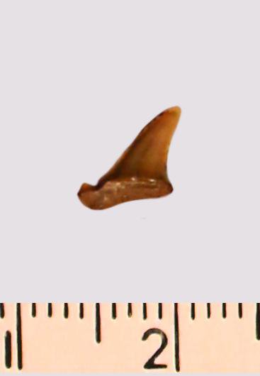 Зуб (фрагмент). Акула. Odontaspis macrorhiza (Cope) Leriche, 1902. Классификация: Хордовые Chordata, Позвоночные Vertebrata, Хрящевые рыбы Chondrichthyes, Пластиножаберные Elasmobranchii