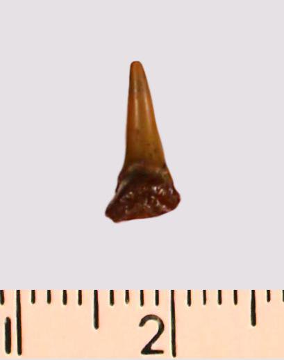 Зуб (фрагмент). Акула. Odontaspis macrorhiza (Cope) Leriche, 1902. Классификация: Хордовые Chordata, Позвоночные Vertebrata, Хрящевые рыбы Chondrichthyes, Пластиножаберные Elasmobranchii