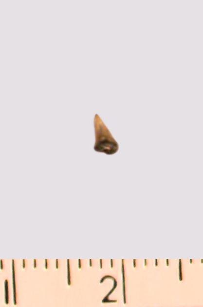 Зуб (фрагмент). Акула. Odontaspis macrorhiza (Cope) Leriche, 1902. Классификация: Хордовые Chordata, Позвоночные Vertebrata, Хрящевые рыбы Chondrichthyes, Пластиножаберные Elasmobranchii
