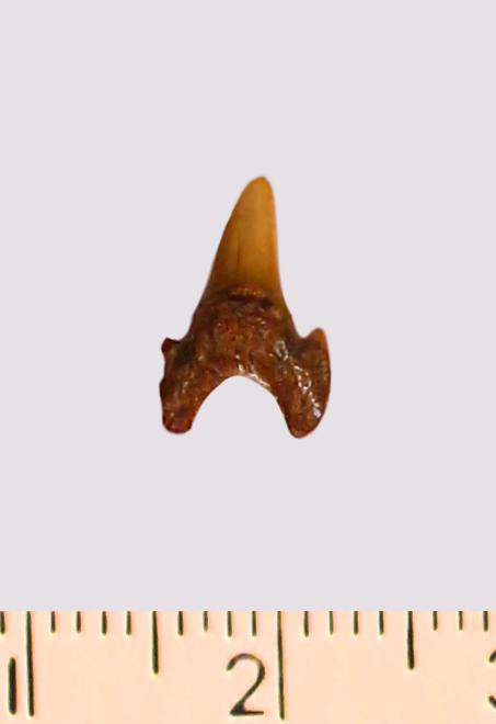 Зуб. Акула. Odontaspis macrorhiza (Cope) Leriche, 1902. Классификация: Хордовые Chordata, Позвоночные Vertebrata, Хрящевые рыбы Chondrichthyes, Пластиножаберные Elasmobranchii