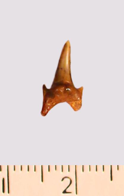 Зуб. Акула. Odontaspis macrorhiza (Cope) Leriche, 1902. Классификация: Хордовые Chordata, Позвоночные Vertebrata, Хрящевые рыбы Chondrichthyes, Пластиножаберные Elasmobranchii