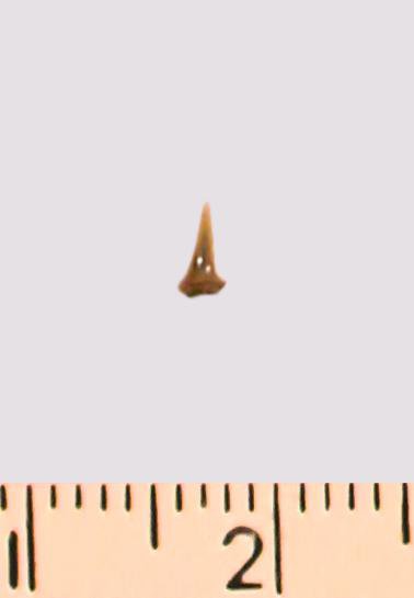 Зуб (фрагмент). Акула. Eostriatolamia gracilis (Davis, 1890). Классификация: Хордовые Chordata, Позвоночные Vertebrata, Хрящевые рыбы Chondrichthyes, Пластиножаберные Elasmobranchii