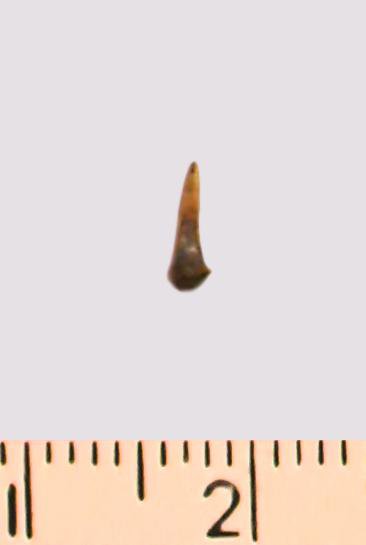 Зуб (фрагмент). Акула. Eostriatolamia gracilis (Davis, 1890). Классификация: Хордовые Chordata, Позвоночные Vertebrata, Хрящевые рыбы Chondrichthyes, Пластиножаберные Elasmobranchii