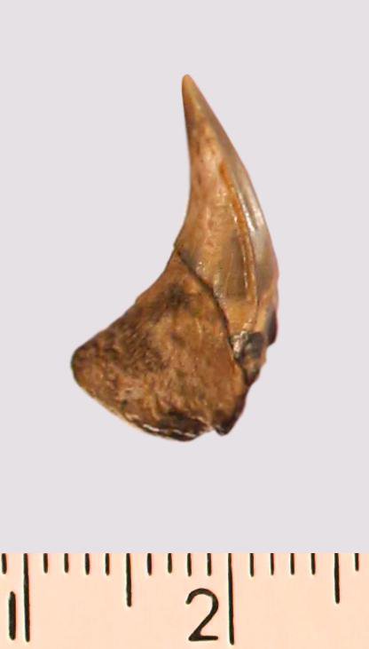 Зуб (фрагмент). Акула. Paraisurus macrorhiza (Pictet & Campiche, 1858). Классификация: Хордовые Chordata, Позвоночные Vertebrata, Хрящевые рыбы Chondrichthyes, Пластиножаберные Elasmobranchii
