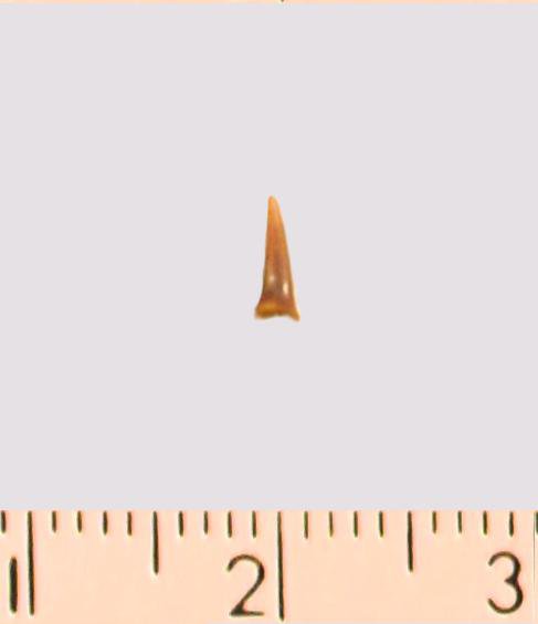 Зуб (фрагмент). Акула. Eostriatolamia ex. gr. gracilis (Davis, 1890). Классификация: Хордовые Chordata, Позвоночные Vertebrata, Хрящевые рыбы Chondrichthyes, Пластиножаберные Elasmobranchii