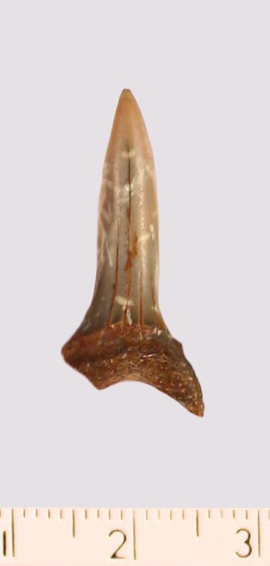 Зуб. Акула. Scapanorhynchus gigas Woodward 1889. Классификация: Хордовые Chordata, Позвоночные Vertebrata, Хрящевые рыбы Chondrichthyes, Пластиножаберные Elasmobranchii