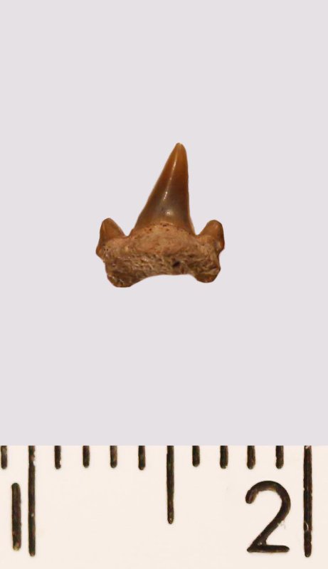 Зуб. Акула. Odontaspis macrorhiza (Cope) Leriche, 1902. Классификация: Хордовые Chordata, Позвоночные Vertebrata, Хрящевые рыбы Chondrichthyes, Пластиножаберные Elasmobranchii