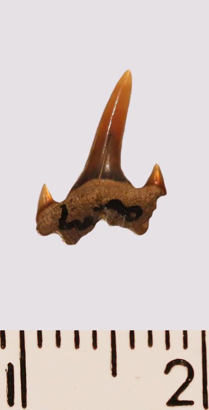 Зуб. Акула. Eostriatolamia gracilis (Davis, 1890). Классификация: Хордовые Chordata, Позвоночные Vertebrata, Хрящевые рыбы Chondrichthyes, Пластиножаберные Elasmobranchii