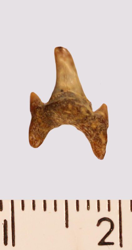 Зуб. Акула. Eostriatolamia gracilis (Davis, 1890). Классификация: Хордовые Chordata, Позвоночные Vertebrata, Хрящевые рыбы Chondrichthyes, Пластиножаберные Elasmobranchii