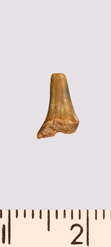 Зуб (фрагмент). Акула. Scapanorhynchus gigas Woodward 1889. Классификация: Хордовые Chordata, Позвоночные Vertebrata, Хрящевые рыбы Chondrichthyes, Пластиножаберные Elasmobranchii