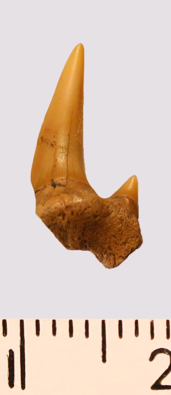 Зуб. Акула. Odontaspis macrorhiza (Cope) Leriche, 1902. Классификация: Хордовые Chordata, Позвоночные Vertebrata, Хрящевые рыбы Chondrichthyes, Пластиножаберные Elasmobranchii