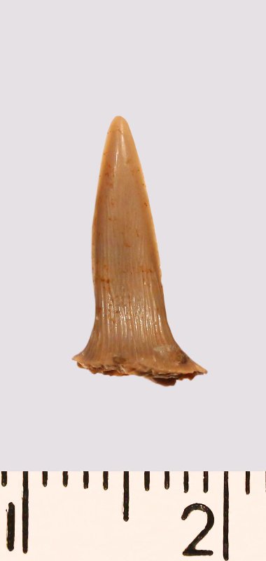 Зуб (фрагмент). Акула. Hispidaspis gigas Woodward, 1889. Классификация: Хордовые Chordata, Позвоночные Vertebrata, Хрящевые рыбы Chondrichthyes, Пластиножаберные Elasmobranchii