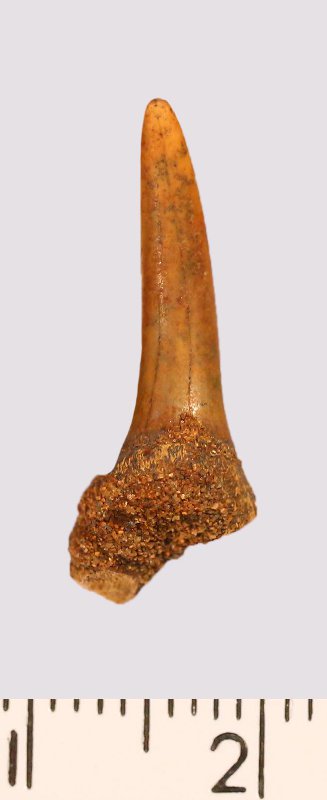 Зуб. Акула. Scapanorhynchus gigas Woodward 1889. Классификация: Хордовые Chordata, Позвоночные Vertebrata, Хрящевые рыбы Chondrichthyes, Пластиножаберные Elasmobranchii